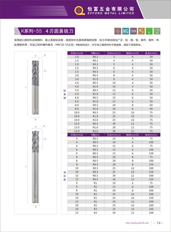 K系列-55度小徑銑刀